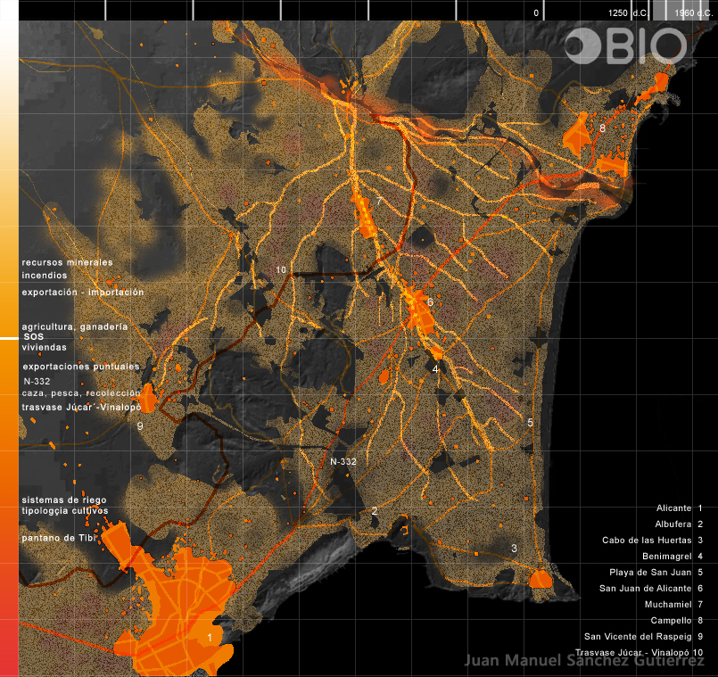 Este estudio surgió como punto de partida para una recuperación y revalorización ambiental del entorno de la Huerta de Alicante fruto de las conclusiones extraídas previamente y explicadas en el artículo “Tratamientos para los “tumores” urbanos”. Todos los trabajos que realizamos en OBIO tienen siempre una mirada optimista hacia un futuro sostenible. Nos gustaría que esta visión no se tomara como una crítica destructiva del pasado, sino como un punto de partida para mejorarlo. Un ejemplo de ello es el proyecto de las Torres de la Huerta que emplea como herramientas de sostenibilidad urbana la contención flexible del crecimiento urbano mediante:
