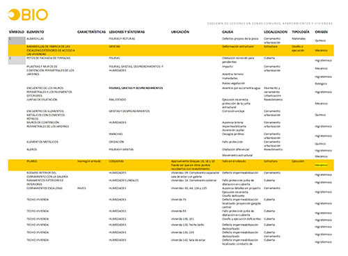 Realizamos una inspección técnica de todas las edificaciones, clasificando y agrupando las lesiones y síntomas según su causa, localización, tipología y origen, y determinando cuales son susceptibles de reclamación a los distintos agentes responsables de las edificaciones.