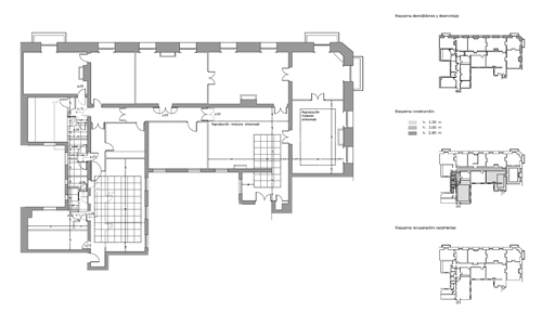 Necesidades: Se necesita una nueva distribución que permita la actividad de notaria en un edificio de viviendas del siglo XIX con protección integral.